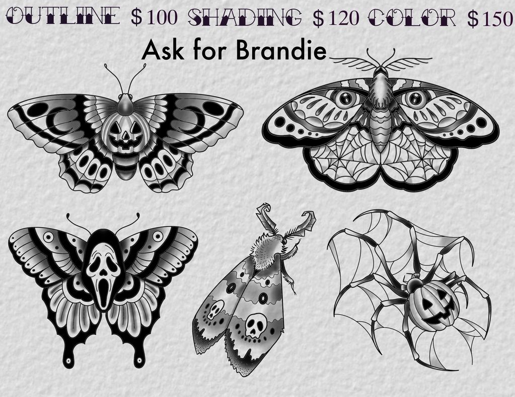 Halloween Tattoo Special by Brandie! prices ranging from $100 - $150. Please message the shop on Facebook messenger or Brandie on